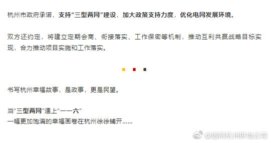 【剛剛!一份十分重要的協(xié)議達成?。。 亢贾菔姓兄Z,支持“三型兩網(wǎng)”建設(shè),加大政策支持力度,優(yōu)化電網(wǎng)發(fā)展環(huán)境。