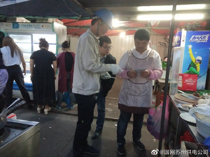 5月21日晚8點(diǎn),國(guó)網(wǎng)蘇州市吳江供電公司七都供電所工作人員在轄區(qū)內(nèi)夜市攤點(diǎn)進(jìn)行用電安全隱患排查,對(duì)發(fā)現(xiàn)問題現(xiàn)場(chǎng)整改,并向經(jīng)營(yíng)戶發(fā)放用電安全手冊(cè),向其講解不規(guī)范用電危害及識(shí)別劣質(zhì)電器的方法。