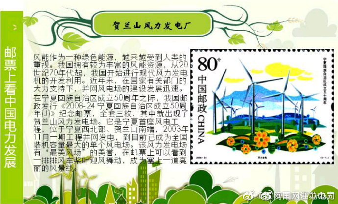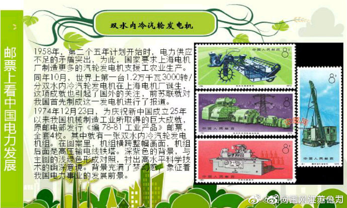 郵票,作為一種郵資憑證,其精美的圖案,還時常體現(xiàn)一個國家或地區(qū)的文化、歷史、經濟、風土人情、自然風貌等。在郵票上我們還能看到新中國的火電、風電、核電以及輸配電等電力工業(yè)也發(fā)展迅速,反映的是我國經濟發(fā)展的蒸蒸日上以及人民生活水平的不斷提高。