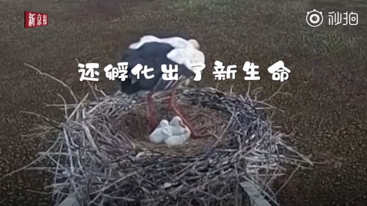 白鸛淡定孵蛋不怕火燒但要小心觸電