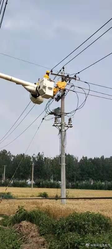 戰(zhàn)疫情 保供電#線路改造升級,迎接夏日炎炎。國網(wǎng)南和縣供電公司組織帶電作業(yè)班人員對10千伏線路進行升級改造,此項工程為改善電壓質(zhì)量,消除供電隱患,保障用戶夏季用電高峰安全穩(wěn)定。 圖為?5月30日,該公司員工對10千伏三張081線路進行帶電拆除高壓線。