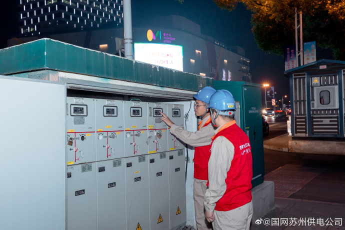 6月8日晚,國(guó)網(wǎng)張家港市供電公司工作人員來(lái)到楊舍老街、曼巴特購(gòu)物廣場(chǎng)等商圈,巡視檢查周邊配電設(shè)備及電力線(xiàn)路,為商戶(hù)夜晚經(jīng)營(yíng)提供充足穩(wěn)定的電力保障,確保城市夜經(jīng)濟(jì)用電安全可靠。