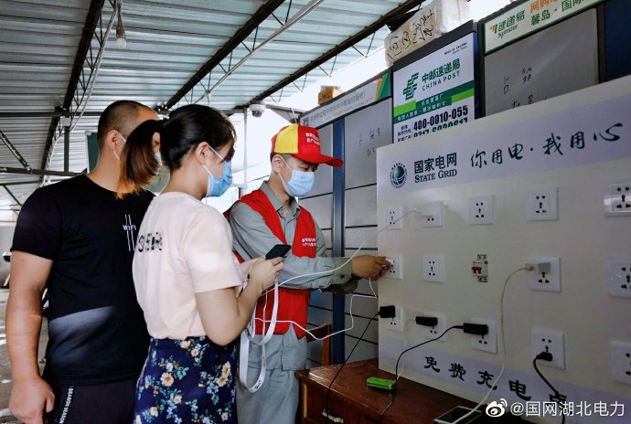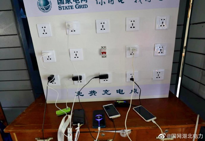 6月29日,國網(wǎng)宜昌供電公司客服中心黨員服務隊將特制的手機充電板裝設到馨島國際名苑小區(qū),供居民免費為手機充電。由于特大暴雨,馨島國際名苑小區(qū)安裝在停車庫的配電室、計費表全部被淹沒,短期內(nèi)積水難以排空,供電搶修難度大。國網(wǎng)宜昌供電公司在全力搶修的同時,增設發(fā)電機和定制充電板,為小區(qū)居民的手機續(xù)航,盡力減少客戶因停電造成的不便。