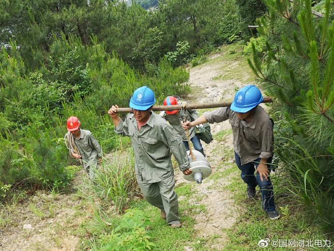 【翻山越嶺,卻無心看風(fēng)景】6月3日,國網(wǎng)武穴市供電公司員工對35kV余荊線28#塔被雷擊損壞的瓷瓶及時進(jìn)行更換。施工地點(diǎn)地處橫崗山森林公園,沿途風(fēng)景秀美,氣勢恢宏,工作人員無暇欣賞美景,肩挑手扛保障橫崗變電站正常供電。