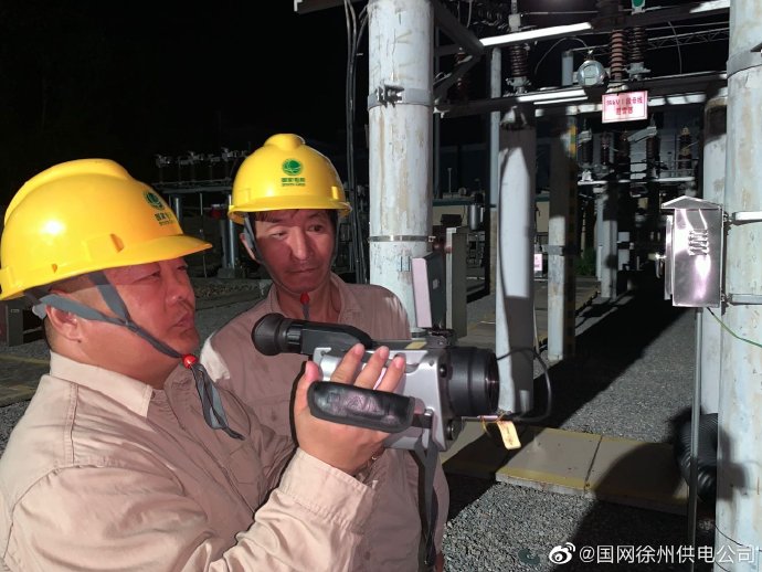 近日,接連幾天氣溫高達(dá)36攝氏度,用電負(fù)荷也隨之不斷攀升,國(guó)網(wǎng)銅山區(qū)供電公司35干伏棠張變電站1號(hào)主變一度出現(xiàn)過(guò)負(fù)荷,為確保電網(wǎng)在夏季用電高峰期間的安全運(yùn)行,該公司運(yùn)維人員每天兩次對(duì)該站設(shè)備進(jìn)行特巡。8月16日晚23點(diǎn)運(yùn)維人員冒著高溫使用紅外測(cè)溫儀在對(duì)設(shè)備進(jìn)行巡視測(cè)溫。