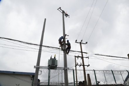 8月21日,細(xì)雨霏霏 ,國(guó)網(wǎng)煙臺(tái)牟平供電公司工作人員在10千伏沁水線主干線冒雨安裝某看守所新上變壓器臺(tái)架,新安裝200千伏安變壓器一臺(tái),助力當(dāng)?shù)靥炀W(wǎng)工程建設(shè)。 ?