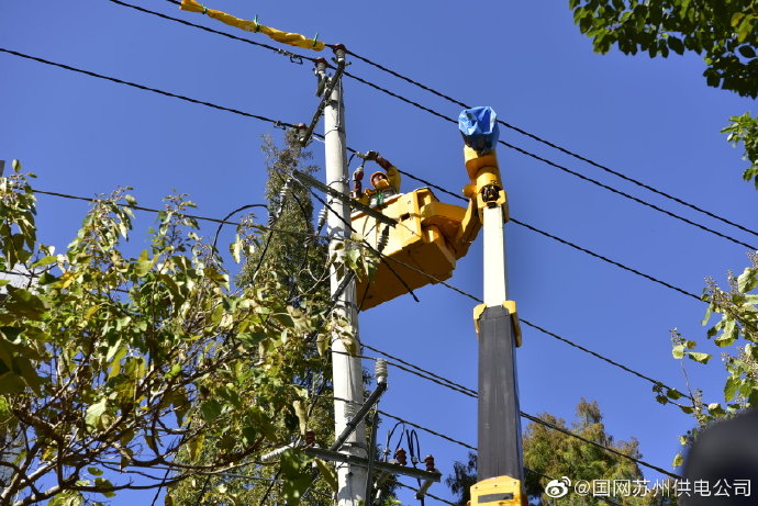 【線路“手拉手” 用電更無憂】11月19日,國網(wǎng)昆山市供電公司帶電作業(yè)班員工在淀山湖10千伏永南線4號桿開展搭接分支引線工作,有效提高供電可靠性,確保線路設(shè)備穩(wěn)定運行和周邊居民正常用電?。