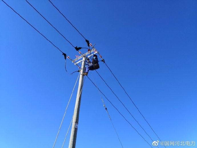 天空湛藍寒風凜冽,線路檢修送溫暖。12月7日,國網(wǎng)滄州市渤海新區(qū)供電公司員工在石玻5713線進行線路檢修,為居民冬季取暖保駕護航。(田浩 龐勇) ????