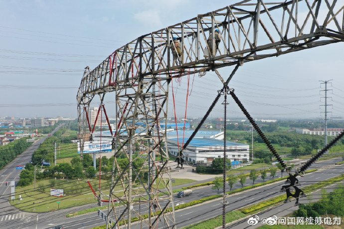 6月28日,國網(wǎng)江蘇檢修公司輸電檢修中心高壓帶電作業(yè)人員登上全國首條500千伏緊湊型雙回路陽珠線。他們運用自主研發(fā)的多功能操作桿更換V型絕緣子串,并取得圓滿成功,填補了500千伏同塔雙回緊湊型輸電線路帶電作業(yè)的空白。 ????