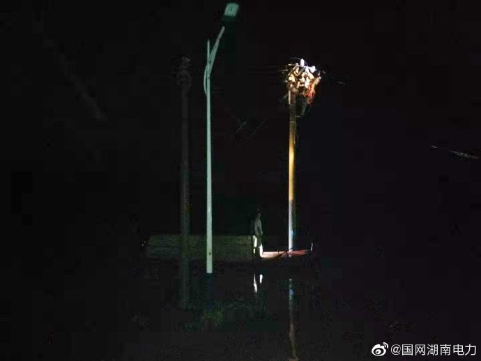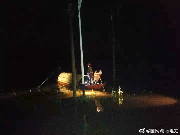 近日,祁陽水位繼續(xù)攀升,一直蹲守低洼現(xiàn)場,防洪水上漲的國網(wǎng)祁陽縣供電公司七里橋供電所發(fā)現(xiàn)寶塔山變電站10千伏寶民線東江村變臺區(qū)一條沙場線路會被洪水浸沒。為不影響村里其他居民用電,該所于當(dāng)晚立即組織人員開展斷電行動,22時30分,搶修隊伍到達(dá)東江村變臺區(qū),該村電桿已被水浸,電力人員借來小舟,扒舟過河,登上10千伏寶民線D02#桿,斷開水浸沙場線路,確保了該村其他居民安全用電。
