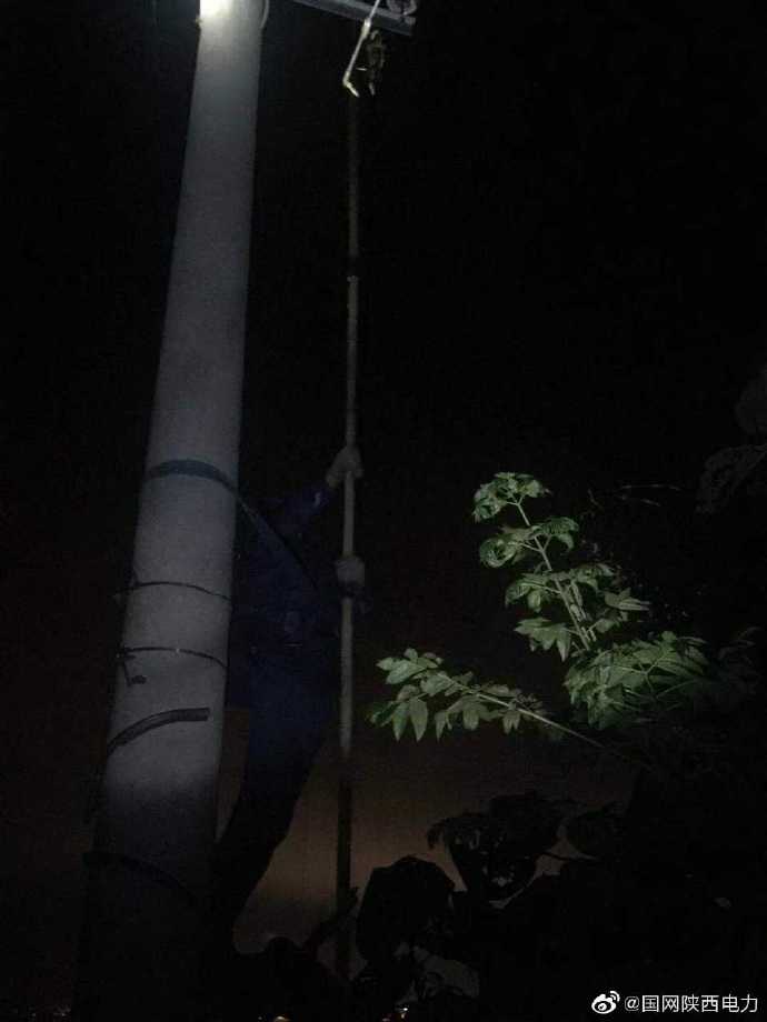 【風停了,雨住了,燈又亮起來了】7月22日,風雨過后,借著手電筒的亮光,國網(wǎng)安康供電公司高新支公司搶修小哥,用長長的絕緣桿合上了架在桿頂?shù)?0千伏雙聯(lián)支線絲具,恢復故障線路供電。靜悄悄的夜里,燈亮了,搶修小哥笑了。