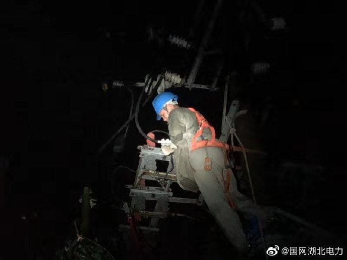 【深夜,用電我們守護(hù)】7月18日凌晨,武漢的夏雨伴隨著陣陣?yán)茁暸拇蛑孛妗:殓笊鐓^(qū)突然停電,國網(wǎng)武漢供電公司武昌配電運檢室的工作人員第一時間趕往現(xiàn)。經(jīng)過排查發(fā)現(xiàn),故障是由雷擊導(dǎo)致洪珈線9#桿斷線引起的,為了讓居民睡個安穩(wěn)覺,工作人員當(dāng)即開展搶修工作,迅速恢復(fù)了供電。