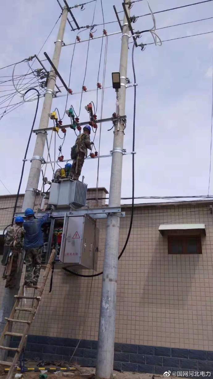 電力公司施工人員冒高溫現(xiàn)場(chǎng)安裝配變?cè)O(shè)備
