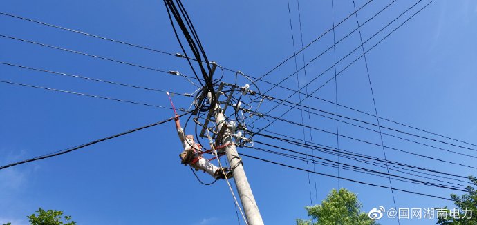 7月26日,國網衡陽供電配電檢修公司電力蜀黍對10kV烏金線#037桿~#040桿進行更換瓷瓶、絕緣導線、加裝拉線工作。