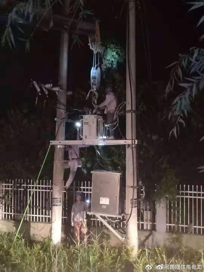 【雷擊毀配變, 夜半搶修忙】7月28日18:20,沭陽縣遭遇暴風(fēng)驟雨,造成塘溝鎮(zhèn)胡塘橋村西姜組1臺200千伏安的配電變壓器被雷擊燒毀,導(dǎo)致110居民失電,國網(wǎng)宿遷沭陽縣供電公司立即組織人員冒著36℃的高溫進(jìn)行搶修,更換配電變壓器,并于23:10更換結(jié)束送電。 ????