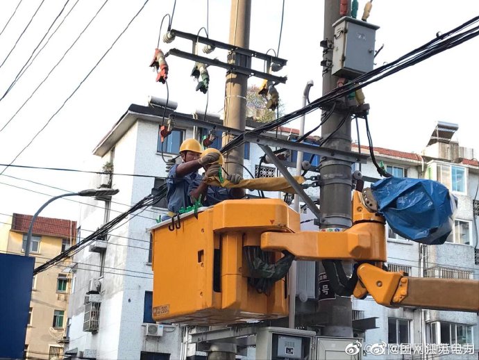 【不停電作業(yè)安裝設備】7月30日,國網揚州供電公司帶電作業(yè)人員在高溫天氣下不停電安裝TTU,保證用戶正常用電。 ????
