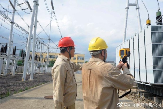 【變壓器前衣衫濕】8月1日午后,國(guó)網(wǎng)盱眙縣供電公司110千伏梁營(yíng)變電站無遮無擋,氣溫高達(dá)三十七八度。主變壓器本身就是一個(gè)約摸五十六度的散熱體,巡視人員衣衫盡濕。近日,持續(xù)高溫,盱眙電網(wǎng)負(fù)荷也兩創(chuàng)新高。當(dāng)?shù)毓╇妴T工也卡在負(fù)荷最高值前后,對(duì)電網(wǎng)設(shè)備進(jìn)行巡視、測(cè)溫,確保電網(wǎng)安全、群眾清涼度夏。