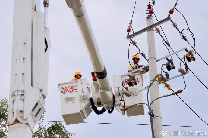 【帶電作業(yè)助力臺(tái)區(qū)建設(shè)】8月1日,國(guó)網(wǎng)即墨市供電公司帶電作業(yè)人員,奮戰(zhàn)在38度高溫中,對(duì)10千伏石棚乙線開展斷、接支接線路引線工作,配合施工人員對(duì)大韓村2臺(tái)區(qū)新上400千伏變壓器工作,為當(dāng)?shù)乜蛻籼峁└觾?yōu)質(zhì)供電。