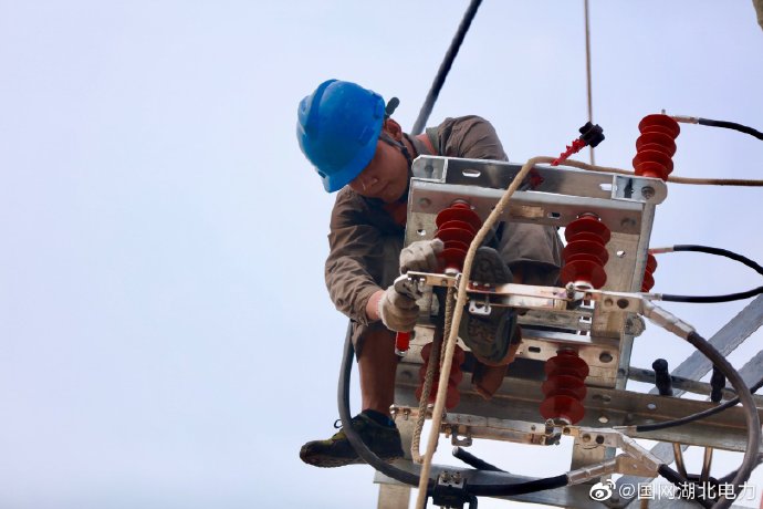 【戰(zhàn)高溫裝開關(guān) 保供電送清涼】8月15日,國(guó)網(wǎng)鄂州供電公司員工在花湖開發(fā)區(qū)10千伏胄山線26號(hào)桿安裝配網(wǎng)自動(dòng)化開關(guān),實(shí)現(xiàn)實(shí)時(shí)檢測(cè)線路電氣參數(shù),加快線路故障隔離速度,減小故障停電范圍,保障市民可靠用電、清涼度夏。