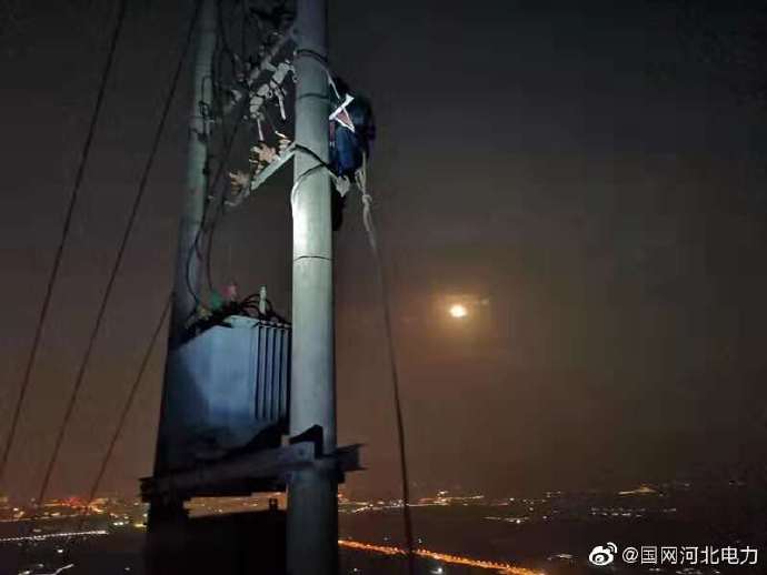 石家莊市鹿泉區(qū)供電公司冒著夜色搶修景區(qū)頂上故障變壓器