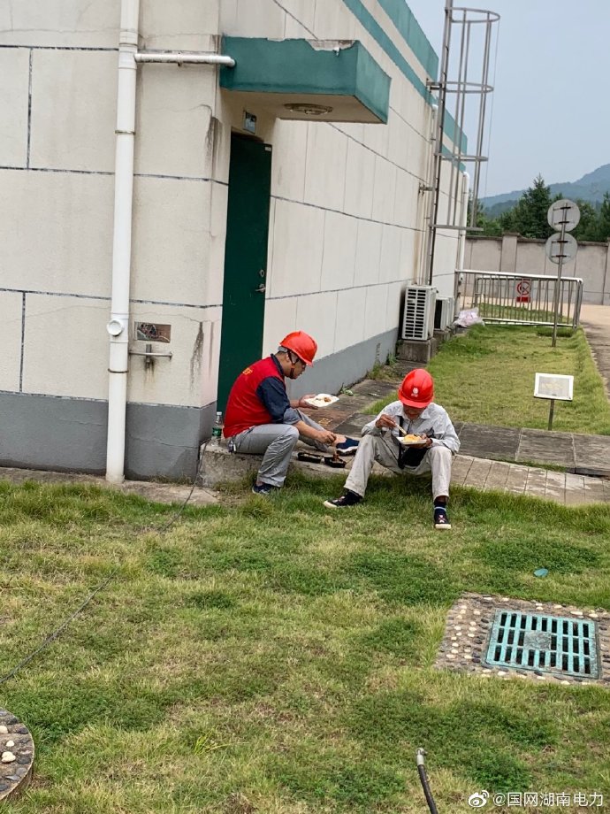 9月4日,邵陽變電檢修公司在220kV扶夷變電站開展變壓器檢修工作,工作人員認(rèn)真工作以致忘記時間,午飯便在主控室門口草草解決。