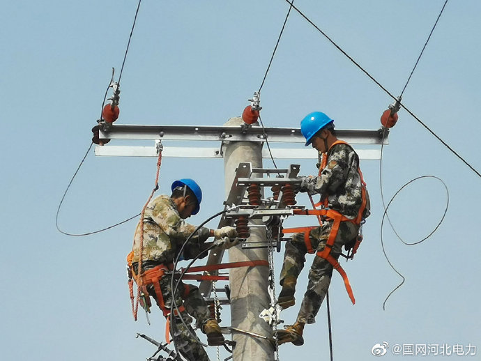 滿城區(qū)供電公司電力小哥對(duì)老化線路金具進(jìn)行更換
