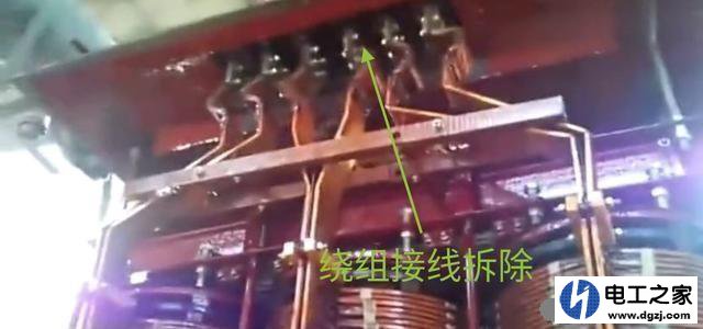 將器身里面滲油的一相繞組與導電桿連接的螺絲卸開。