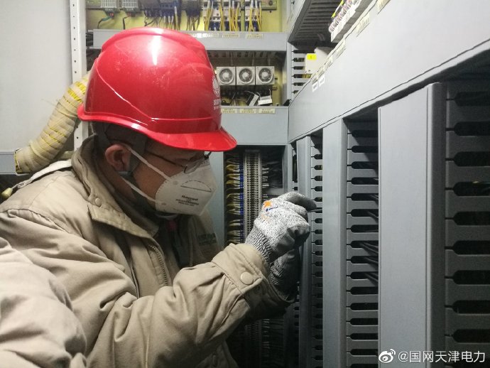 3月12日,天津送變電員工董陽在務(wù)本220千伏變電站安裝GIS匯控柜二次接線,確保工程有序進行。 ????
