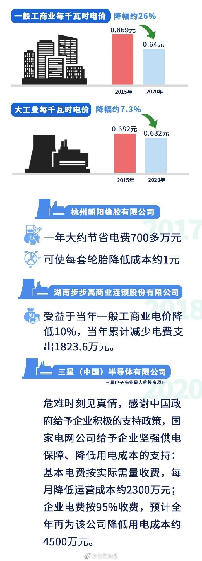 五是電力營(yíng)商環(huán)境持續(xù)優(yōu)化。實(shí)施優(yōu)化營(yíng)商環(huán)境兩年行動(dòng)計(jì)劃,世界銀行“獲得電力”指標(biāo)排名從去年的第14位上升至第12位,為我國(guó)營(yíng)商環(huán)境總體排名從46位提高到31位作出貢獻(xiàn)。堅(jiān)決落實(shí)國(guó)家降價(jià)降費(fèi)部署,全面完成一般工商業(yè)平均電價(jià)再降低10%任務(wù),降低用戶(hù)成本負(fù)擔(dān)641億元。全年有力保障了社會(huì)用電需求,實(shí)現(xiàn)迎峰度夏、度冬期間電力供需平穩(wěn)有序。