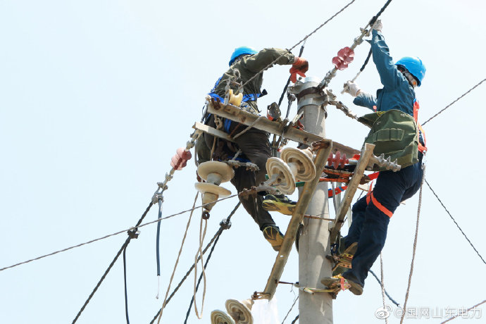 6月5日,國(guó)網(wǎng)沂水縣供電公司工作人員頭頂烈日,在38℃高溫下,對(duì)馬叫旺村進(jìn)行設(shè)備升級(jí)改造,新裝200千伏安變壓器一臺(tái),新立線桿6基,展放絕緣導(dǎo)線310米。升級(jí)改造后,該村供電質(zhì)量將進(jìn)一步提升,迎峰度夏期間供電更加安全可靠。