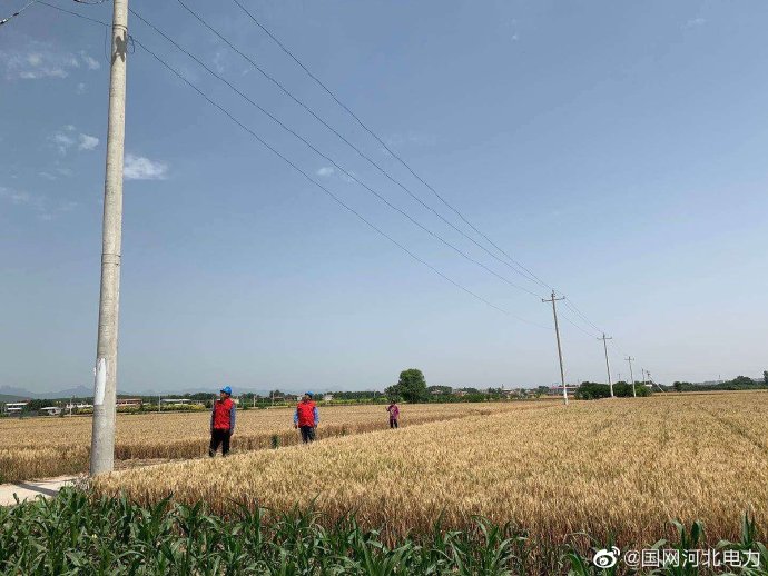 線路巡視,服務“三夏”。6月7日,國網(wǎng)贊皇縣供電公司員工深入田間進行線路巡視,給麥田里的電桿拉線加裝安全警示標志,確?!叭摹鞭r(nóng)忙時節(jié)轄區(qū)電網(wǎng)設備安全運行,保障“三夏”期間群眾安全可靠用電。