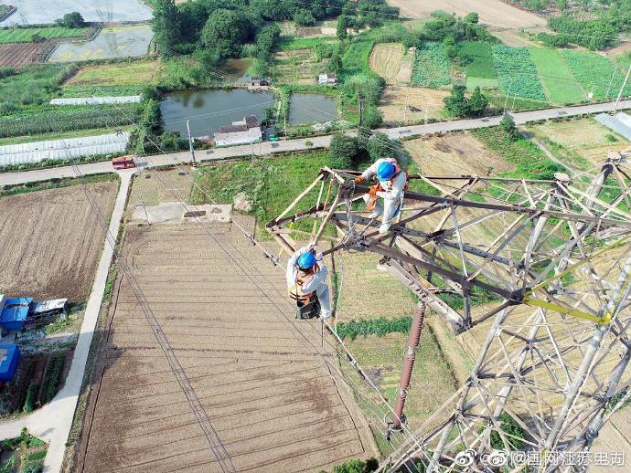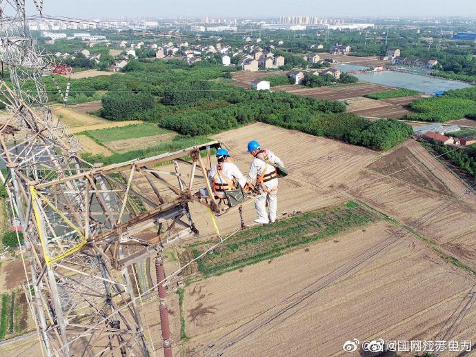 【開(kāi)展保電特巡】9月9日,國(guó)網(wǎng)江蘇檢修公司徐州運(yùn)維站輸電運(yùn)檢班在500千伏艾姚、艾湖線開(kāi)展保電特巡工作。烈日當(dāng)空,班組人員不懼炎熱,對(duì)“三跨”區(qū)域、耐張桿塔展開(kāi)重點(diǎn)巡視,為電網(wǎng)的安全運(yùn)行保駕護(hù)航。 ????